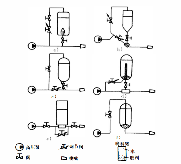 MORE+现行磨料水悬浮液射流大多采用上节所述旁路加压方法,所不同的只是工作压力及磨料混合方式。