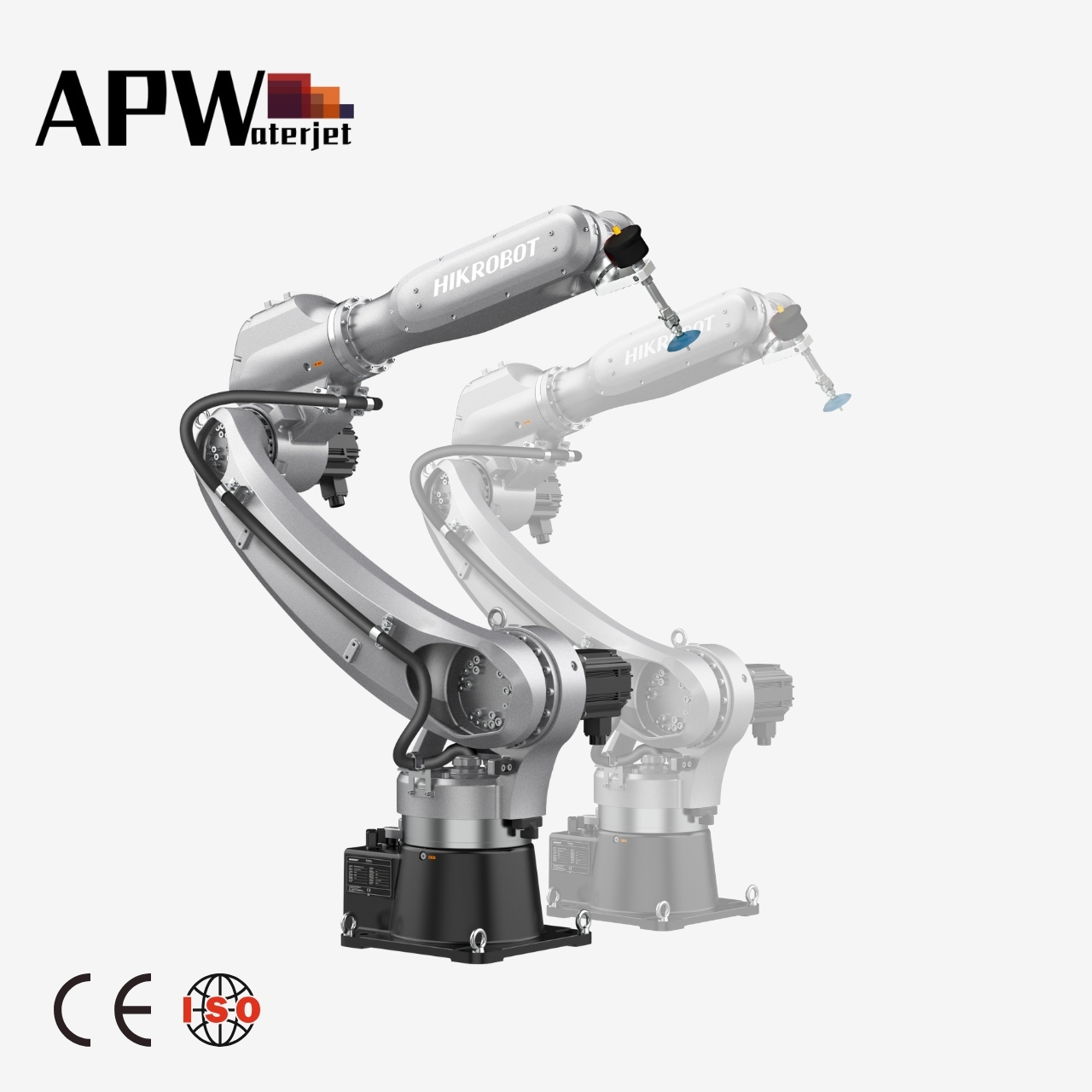 MORE+机器人水刀臂(或称“机器人水刀切割系统”)结合了工业机器人与水刀切割技术,形成灵活高效的自动化切割解决方案,尤其适用于复杂曲面、大型工件和非规则形状的加工场景。