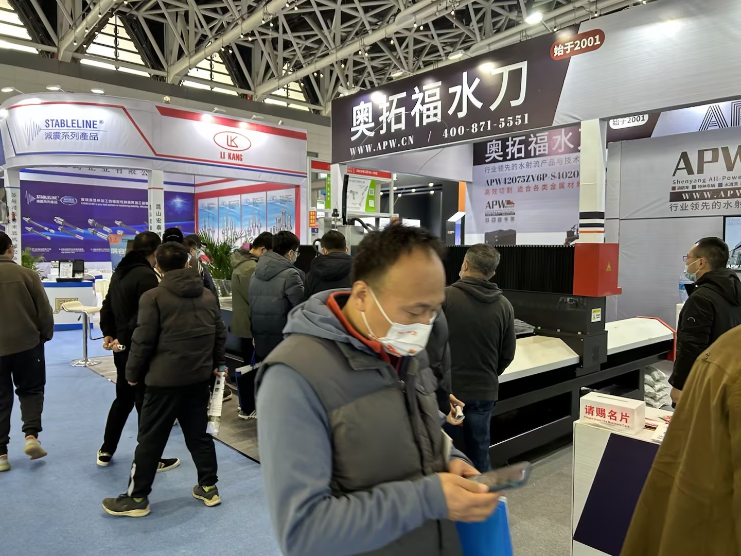 2023年3月17日中国西部国际装备制造业博览会正在火热进行中,作为受邀企业,奥拓福水刀在2号展馆展出的“智能超高压水切割机”以全自动上下料翻转架,搭配智能激光探高科技,全面展示了智能制造相关的最新产品及前沿解决方案多维度、全方位地诠释智能制造发展趋势,吸引了众多观众驻足围观。