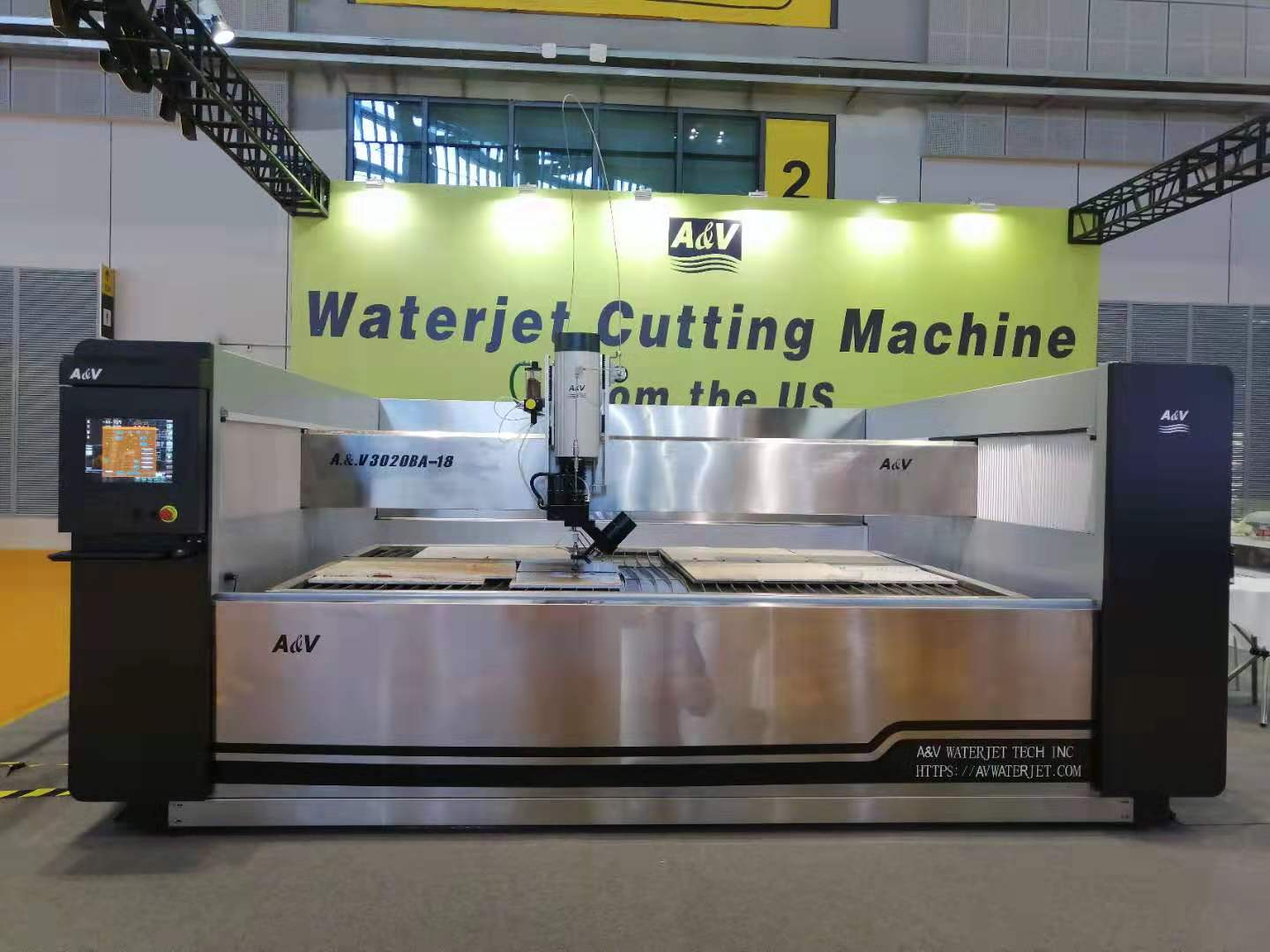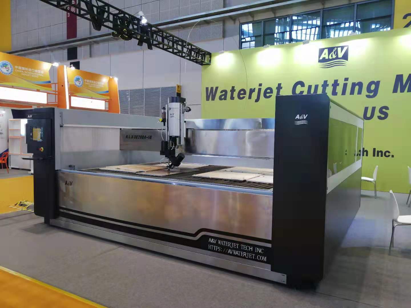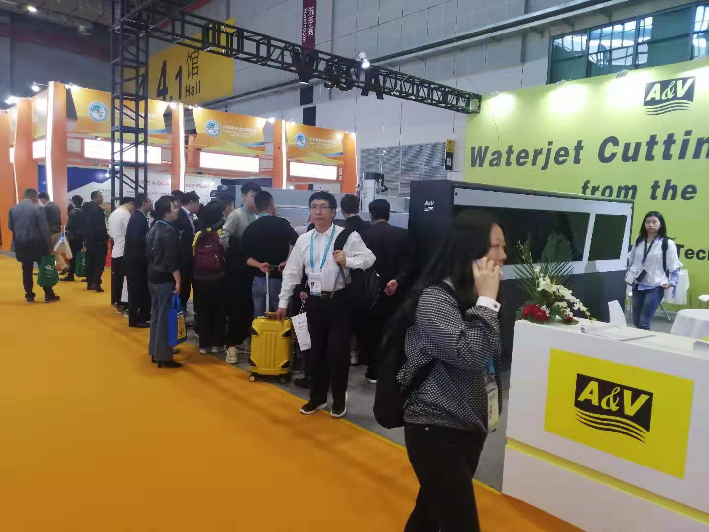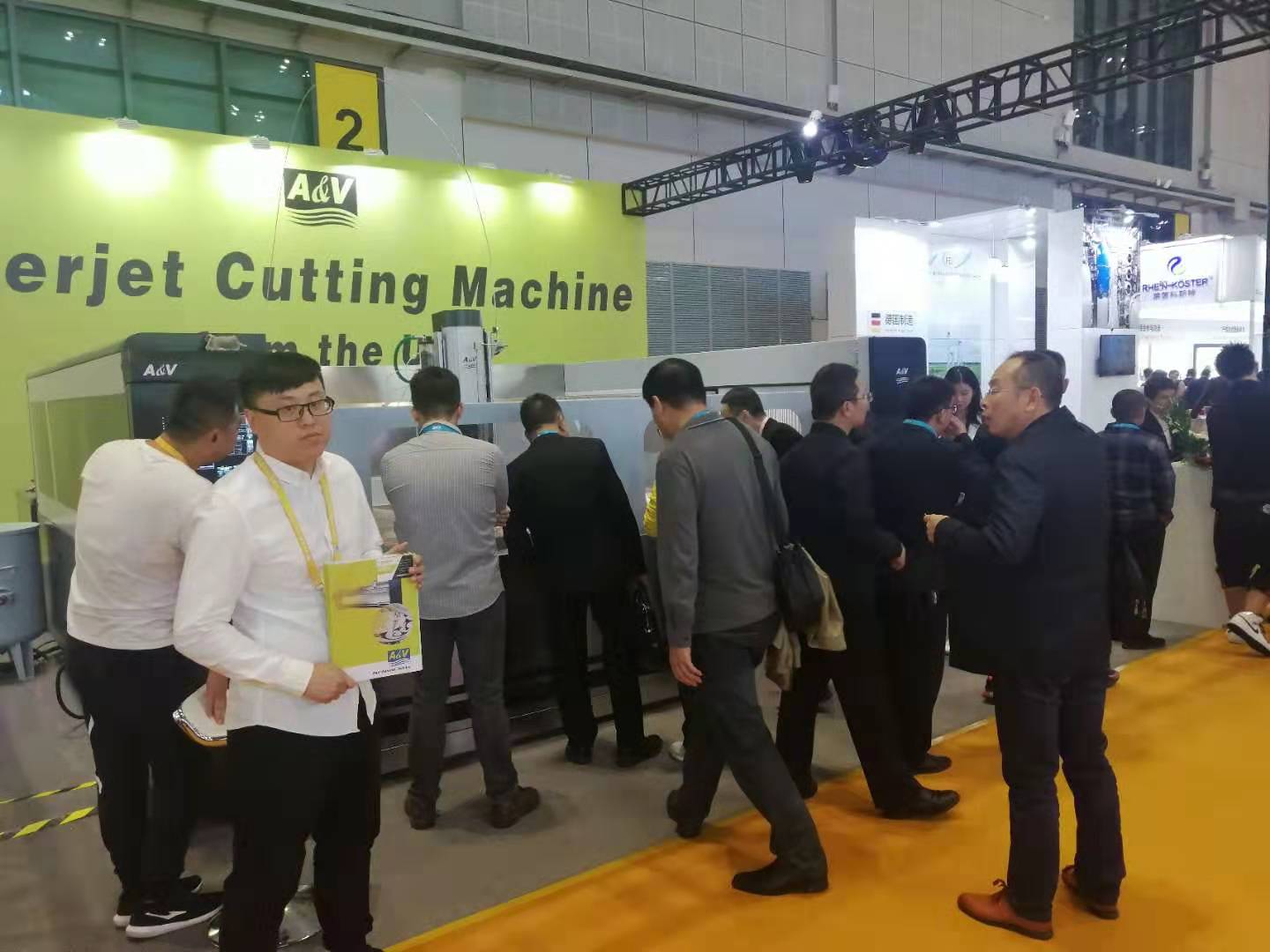 展会现场上,爱迪威(A&V)公司参展的“龙门式定心AC五轴水切割平台”,以卓越的性能,实用、美观的外型赢得青睐。