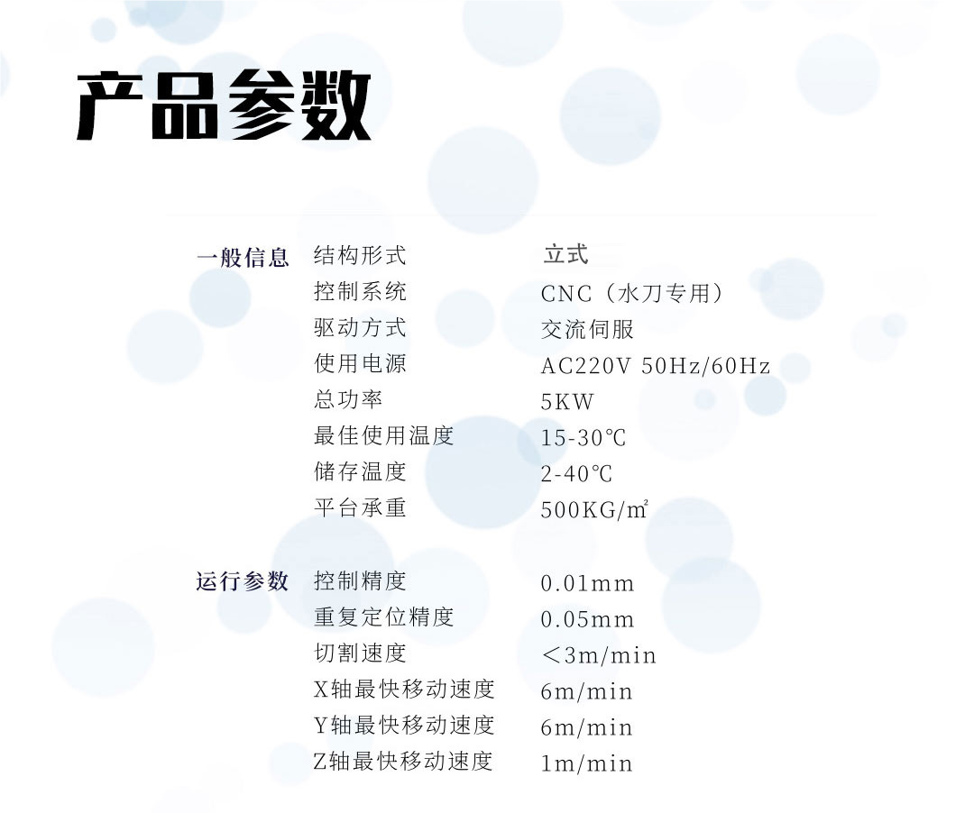 定制水切割机系列包括机器人切割专机、叶轮切割专机等,专为特定行业和复杂加工需求而设计。其高度的灵活性和定制化能力能够满足用户在特殊材料、复杂形状或高精度加工方面的个性化需求。