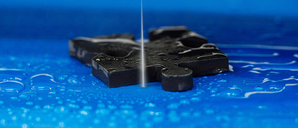 MORE+水刀切割比激光切割慢,只有一半左右,但精度相当。 像激光切割一样,切割边缘是方形且光滑的。 但与激光切割不同,它没有热影响区,几乎可以切割任何材料。