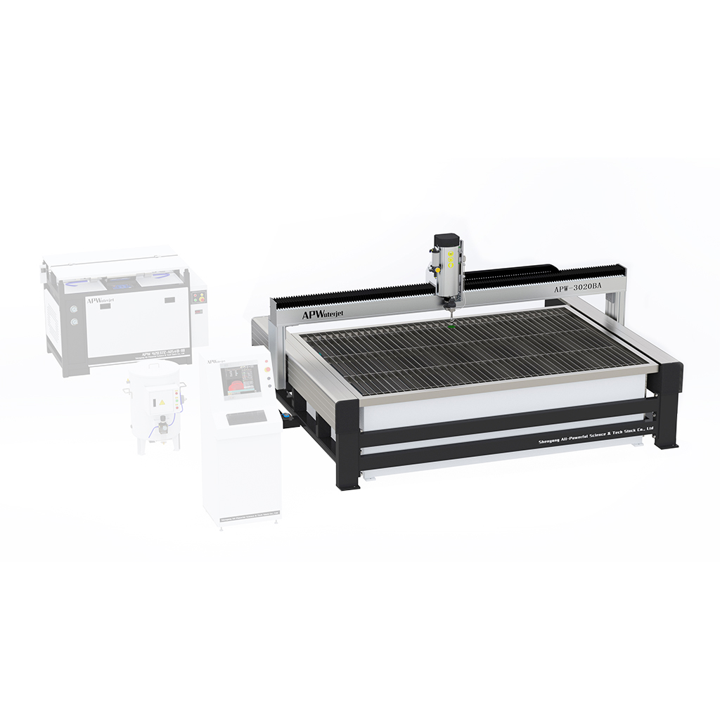 MORE+高压水切割机是利用高压水射流与砂混合以极高的速度对金属材料进行切割。