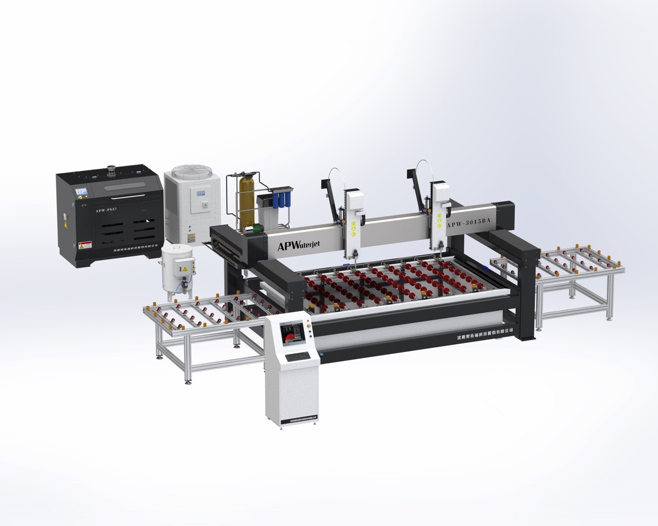 MORE+航空工业的一个重大需求是对大尺度曲面复合材料的机翼、尾翼和蒙皮的加工,由于机械加工对复合材料会产生分层、变形和劈裂等问题,美国波音公司已将超高压五轴联动水切割作为标准工艺,因此,催生了特大型水切割专用加工机床。
