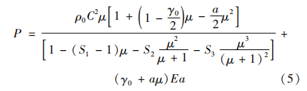 式中:E为单位体积内能;C为 vs-vp曲线截距;s1,s2,s3为 vs-vp曲线斜率系数;γ0 为 Grueisen常数;a为一介体积修正量。