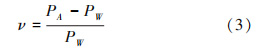 磨料射流和纯水射流的对比试验表明:在一定条件下,磨料的加入对射流冲击压力有显著的强化效果, 这是由于磨料射流为二相流冲击,其密度远大于纯水射流的缘故。 定义强化系数 ν 为: