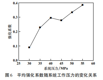 图6给出了在不同靶距情况下的平均强化系数随系统工作压力的变化关系。