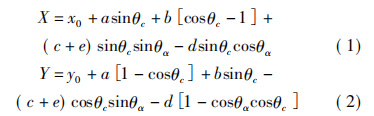 假设 O1 ( x0,y0 ) 、锯片绕 A、C 轴旋转的角度分别为 θa 和 θc,修正后的控制点位置坐标 O( X,Y)可由以下补偿公式计算: