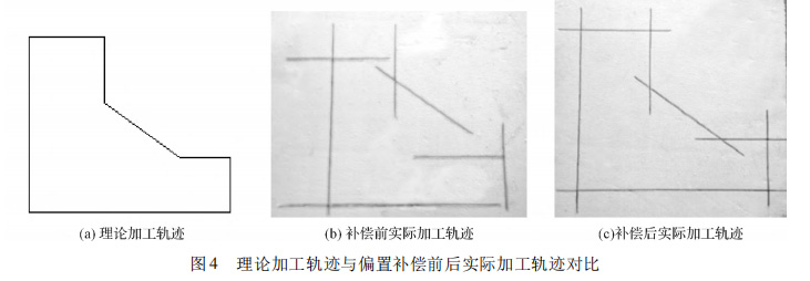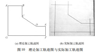 本研究应用上述偏置补偿和预处理进行加工测试,实际加工如图 10( b) 所示,对比理论轨迹可以看到,实际加工轨迹完全符合预期的加工要求。