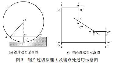 个点,而是一段与切深 d 有关的线段 AB,锯片过切原
