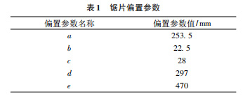 以所使用的双摆头五轴机床为例,其锯片( 以锯片背部为基准) 安装位置的偏置参数如表 1 所示。